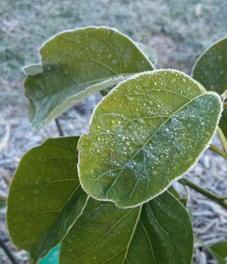 Radiational Frost is referred to as frost in South Africa. It is formed when we experience warm days and cold nights. The heat from the day is absorbed into the ground and when the air cools at night, heat radiates from the ground and rises. As this happens there is a rapid drop in temperature near the surface and the very low temperature allows frost to form on your trees and fruit. This is turn dehydrates the crops by pulling moisture from the surface and causes permanent damage.